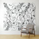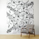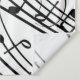 Design blanc avec barres de musique bouclées et notes de quartier dansantes