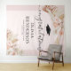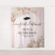 Tapisserie de graduation bohème élégante avec un fond rose poussiéreux avec une arche florale, feuilles de palmier séchées du désert aquarelle, herbe des pampas, un chapeau de diplômé, le titre "félicitations", leur nom, école et année de classe.