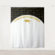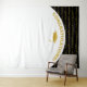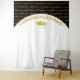 Tapisserie de remise de diplômes noire et dorée élégante, conçue pour les séances photo de célébration des diplômés. Il y a un petit graphique de chapka universitaire dans le même ton de couleur de la police de caractères en arrière-plan. Le texte incurvé indiquant FELICITATIONS est personnalisable, vous pouvez donc modifier le texte, par exemple ajouter votre nom ou créer votre propre texte. Articles assortis disponibles. Choisissez parmi une large sélection de modèles de diplômés sur cartes, invitations, vêtements, décoration intérieure et cadeaux, conçus par Berean Designs.