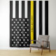 Cette tapisserie qui peut être utilisée comme arrière-plan photo pour des occasions spéciales, présente un drapeau américain à ligne jaune fine noir et blanc de dispatcher ainsi qu'un nom d'agent pour que vous puissiez personnaliser.