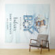 Personnalisez facilement et rapidement cette bannière de fond de tapisserie de bienvenue pour Baby Shower ourson Marin fantaisiste. Cliquez simplement sur le bouton Personnaliser pour modifier les textes, changer les polices et les couleurs de police. Avec un mignon capitaine ours en peluche à la barre d'un petit bateau et un titre "C'est un garçon".
