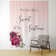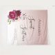 Une tapisserie pour une fête d'anniversaire Sweet 16. Un fond ombré rose gold élégant et féminin. Décoré de fleurs de couleur violet foncé, bordeaux et rose. Modèles pour un nom et une date. Le texte : Sweet Sixteen est écrit en noir avec un grand style de lettrage à la main moderne. Parfait comme décoration pour la fête ou comme arrière-plan photo.