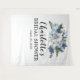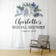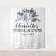 Un grand bouquet floral bleu poussiéreux crée un joli arrière-plan pour vos photographies de douche de mariage. Trois lignes de texte sont à votre disposition pour personnaliser.