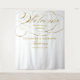 Tapisserie murale de bienvenue pour le 50e anniversaire avec un texte en écriture dorée FAUX élégante. Le mot "welcome" est une IMAGE produite pour ressembler à une finition métallisée grise, mais il est imprimé avec de l'encre mate et ne peut pas être modifié. Tous les autres textes peuvent être entièrement modifiés. Choisissez votre taille et personnalisez le texte, ou cliquez sur "Personnaliser davantage" pour changer la couleur de fond et la taille ou le style de police.