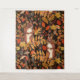 Tenture Écureuils automnaux et flore sur brun foncé