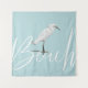 Tapisserie Avec Belle Plage d'Aiguille Neige Peinte en Lettres Script. Vous êtes susceptible de voir ce bel oiseau Snowy Egret le long de la côte lors d'une promenade sur la plage, près des zones humides de l'intérieur, et le long des bords des rivières et des lacs. Disponible en différentes tailles. Conception de Jenn's Emporium.