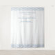 Ajoutez une tapisserie personnalisée à votre élégant mariage de l'époque de la côte bleue et blanche chic ou de régence avec cette bannière photo. Une frontière superbe est parfaite pour un vieil argent ou un vintage minimaliste bleu poussiéreux lieu d'événement en lieu et place d'une arche mariage traditionnelle. Utilisez cette tapisserie mariage comme toile de fond photo à la réception et personnalisez la citation mariage qui lit notre conte de fées vient de commencer. Conçu par Simple Desert Designs. Faites-nous un message pour les couleurs customisées dans ce design pour correspondre à votre palette de couleurs exacte.