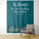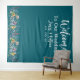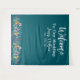Elégant Elegant Dark Turquoise Mariage Backdrop Créer une déclaration intemporelle avec cette toile de fond mariage bleu poussiéreux personnalisable, conçue pour compléter les thèmes de célébration romantiques et raffinés. Doté de délicats accents floraux et d'une typographie gracieuse, il est le canevas idéal pour ajouter vos noms uniques et votre date mariage, ce qui en fait une pièce exceptionnelle pour votre cérémonie ou votre décoration de réception.