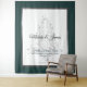 Customisez cette élégante cabine photo mariage vert émeraude, argent et blanc avec votre touche spéciale. Cette belle tapisserie présente les noms de la mariée et du marié, date mariage et les mots "Foi, Espoir, Amour, mais le plus grand de ceux-ci est l'amour. 1 Corinthiens 13:13" dans la typographie de script moderne sur un sapin de Noël étoilé avec une bordure métallique argent et vert émeraude. Si vous avez besoin d'aide ou d'articles correspondants, veuillez me contacter.