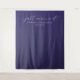 This elegant wedding backdrop features a deep purple background with a simple, sophisticated layout. The design includes the phrase "just married" in an elegant cursive script, complemented by uppercase serif font for names and a clean sans-serif font for additional details. Its minimalistic style creates a modern yet timeless look, perfect for celebrating your special day with joy and sophistication.