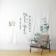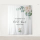 Bannière de shower de mariage élégante, classique, style moderne, tapisserie. Décoré de pivoines aquarellisées blanches, fleurs florales et verdure d'eucalyptus. Avec le texte : Shower de mariage écrit avec un style de lettrage à la main moderne de couleur noire. Personnalisez et ajoutez le nom de la mariée et une date. Peut être utilisé comme bannière de bienvenue, décoration murale pour le shower de mariage ou comme toile de fond pour photos.