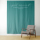 This elegant wedding backdrop features a calming gradient of teal shades, transitioning from deep to light. The design includes the phrase "just married" in a flowing cursive script, creating a romantic and sophisticated atmosphere. Customizable names and dates are presented in a clean sans-serif font, ensuring clarity and balance. Perfect for celebrating your special day, this minimalist design focuses on typographic elegance, making it ideal for modern weddings.