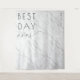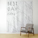 This elegant wedding backdrop features a minimalist design with a marble-like background and subtle gray veining. The color palette is primarily white, accented by crisp black text that reads "BEST DAY ever" in a mix of bold sans-serif and flowing cursive fonts, creating a modern yet sophisticated look. The layout is clean and balanced, utilizing negative space to highlight the celebratory message, perfect for capturing memorable moments on your special day.