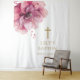 Cette toile de fond moderne et élégante de baptême floral rose couleur aquarelle poussiéreuse peut être personnalisée avec vos informations dans la typographie dorée moderne. Conçu par Thisisnotme©