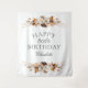 Une élégante photo en toile de fond ou une enseigne murale pour fêter un 80e anniversaire, cette tapisserie de fête présente des fleurs d'ivoire beige aquarelle et des feuilles d'automne en bordure de votre texte. C'est un choix parfait pour les fêtes d'anniversaire en automne. Remarque : le titre du 80e anniversaire peut être personnalisé pour n'importe quel anniversaire d'âge. Personnalisez le modèle texte facile à utiliser avec vos détails.