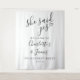 Ce panneau de fête de fiançailles "elle a dit oui" noir et blanc élégant et fond de photomaton peuvent être personnalisés avec vos informations de fête spéciales. Conçu par Thisisnotme©