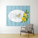 Un élégant design de Fête des mariées avec un arrière - plan en tuiles bleues et une tasse de citrons.