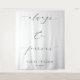 Ajoutez la touche finale à votre mariage avec cette toile de fond personnalisée de devis de mariage. Cette toile de fond mariage présente un design minimaliste avec une ligne de calligraphie de script. L'en-tête de script est une image qui ne peut pas être modifiée. Tous les autres textes sont entièrement modifiables. Cette toile de fond mariage est l'accompagnement parfait de votre mariage, fête de fiançailles, petit déjeuner mariage, douche à couple ou renouvellement de voeu. Pour une personnalisation plus avancée de cette conception, il suffit de cliquer sur le bouton "Customiser" ci-dessus.