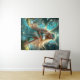 A luminous forest fairy sits gracefully on mossy ground, her flowing turquoise gown and shimmering wings glowing with tiny lights as butterflies dance around her. This magical artwork brings a sense of serenity, wonder, and fantasy to any wall.