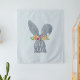 Notre silhouette de lapin d'aquarelle douce est ornée d'une couronne de fleurs d'aquarelle, avec les mots "enfant sauvage" dans le script de calligraphie blanche.