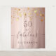 Une tapisserie d'anniversaire tendance et glamour pour 50 ans (ou tout autre âge). Un fond rose doré girly orné d'étoiles qui tombent en faux or. Avec le texte : 50 et fabuleuse. Personnalisez et ajoutez un nom. Texte marron. Le mot Fabuleuse est écrit avec un style de lettrage manuscrit moderne avec des fioritures.