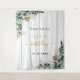 Pour une fête d'anniversaire 21 ans (ou tout âge). Bois blanc rustique en fond. Décoré de feuilles d'eucalyptus aquarelles vertes, brindilles, feuillage et feuilles dorées fausses. Personnalisez et ajoutez un nom, 21 ans et une date. Lettres noires et dorées. Peut être utilisé comme bannière de bienvenue, comme décoration murale de fête ou comme toile de fond pour photobooth.