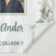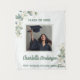 Celebrate your achievement with this elegant botanical graduation photo backdrop. It features soft watercolor eucalyptus sprigs and a refined sage green border that frames your favorite senior portrait. This commemorative tapestry is the perfect focal point for a high school or college graduation party.