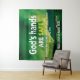 TAPISserie murale d'église chrétienne "FAIRE CONFIANCE AU SEIGNEUR" dans des nuances de vert. Élégante décoration murale chrétienne inspirante basée sur PROVERBES 3:5-6, qui commence par "Faire confiance au Seigneur de tout ton cœur". La citation inspirante principale indique LES MAINS DE DIEU SONT SÛRES. L'image de fond représente les aurores boréales. Il y a un ESPACE POUR TEXTE PERSONNALISÉ où vous pouvez ajouter votre nom, le nom de votre famille, le nom de votre église ou le nom de votre organisation basée sur la foi. Cette tapisserie chrétienne vibrante est certaine de rehausser les murs de votre maison ou de votre église, et de donner l'assurance de la protection et de la fidélité de Dieu. Choisissez parmi une large sélection de versets bibliques populaires sur les décors d'église