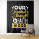 Show the world where your strength comes from with this bold Christian quote design: “Our Greatest Strength is Faith in God.” Featuring vibrant yellow and white typography on a black background, this faith-filled design is perfect for believers who want to express their trust in God with confidence and style. Ideal for Christian apparel, mugs, wall art, and stickers—great for youth groups, church events, or personal inspiration.