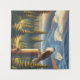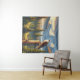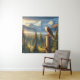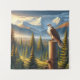 Ceci est une illustration qui montre un faucon sur un poteau. Le faucon est entouré par la nature avec des arbres, chaînes de montagnes sur l'arrière - plan. Cette tapisserie derrière votre lit est comme avoir l'extérieur dans votre chambre.
