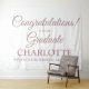 Félicitations à notre diplômé de la typographie de script personnalisé élégant Signer et la fête de graduation arrière. vous pouvez le customiser avec le nom, l'école, la graduation, l'année de classe, etc Texte en or faux rose entièrement personnalisable, blanc solide arrière - plan uni. Toutes les couleurs sont modifiables. Banderole moderne élégante de diplôme de faire-part de typographie, idéal pour les enfants et les adultes. Personnalisable pour la maternelle, l'école primaire, le collège, le lycée et l'université. C'est une excellente façon d'afficher un faire-part de graduation. Consultez le reste de la collection pour obtenir des cadeaux de fin d'études, des faveurs, des fournitures de fête et des articles de décoration supplémentaires.