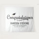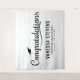 Tapisserie moderne de remise des diplômes avec lettrage blanc gras sur fond noir. Le design comporte une casquette de remise des diplômes blanche avec la phrase "Félicitations". Personnalisez la bannière de remise des diplômes marine en ajoutant le nom du diplômé, le nom de l'école et l'année de remise des diplômes. Pour un look plus personnalisé, changez le fond en vos couleurs scolaires. L'affiche de remise des diplômes est parfaite pour votre fête de remise des diplômes au lycée ou à l'université !