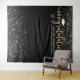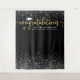 Élégant panneau de fond pour fête de remise de diplômes célèbre votre diplômé avec style ! Le design présente une casquette de diplômé, "Félicitations" en écriture moderne en feuille de faux or, et un texte personnalisé moderne qui peut être personnalisé avec le nom du diplômé, l'année de promotion, et l'école. Comprend une bordure de confettis argentés et blancs scintillants. La couleur de fond noire peut être modifiée.