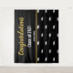 Ce fond de photo noir présente un motif de casquettes de diplômés blanches en arrière-plan. Il y a un texte d'affichage que vous pouvez personnaliser avec un message personnalisé (Affiché : Félicitations), l'année de remise des diplômes de la promotion, et le nom de l'établissement scolaire. Le script doré faux est un rendu artistique. (Il n'est pas en feuille métallique.)