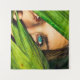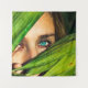 Tenture Femme derrière les feuilles verts
