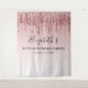 Tapisserie personnalisée chic et féminine pour photobooth pour votre fête d'anniversaire 30 ans avec des gouttes de paillettes roses et or rose sur un fond ombré rose et votre nom dans un script élégant. Vous pouvez modifier l'année d'anniversaire et ajouter la date ou laisser vide.