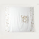 Célébrez votre 50e anniversaire avec ce panneau de bienvenue qui fait également office de toile de fond pour photobooth de station selfie. Un design de confettis or et blanc pour mettre en valeur ce jalon. Personnalisez avec votre nom.