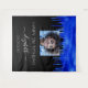 Une tapisserie pour un anniversaire 21 ans (ou tout âge) girly et glamour. Un fond noir avec un effet de peinture bleue royale qui goutte. Personnalisez et ajoutez votre propre photo de haute qualité de la fêtée. Le texte : Le nom est écrit avec un style de lettrage à main moderne avec des fioritures. Pour garder les fioritures, supprimez simplement le nom exemple, laissez les espaces ou émojis devant et après le nom. Modèles pour un nom, âge 21 et une date. Peut être utilisé comme décoration murale pour la fête ou comme toile de fond pour un photomaton.