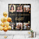 Un arrière - plan noir décoré d'étoiles dorées et de 6 photos carrés. Personnalisez et ajoutez l'âge et un nom. Le nom est écrit avec un script de style à la main tendance.