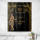 Bannière de bienvenue élégante en faux or et glamour, décoration murale ou toile de fond pour une fête d'anniversaire sur le thème des années 1920 pour 50 ans (ou tout âge) ! Style art déco en faux or et noir pour une célébration glamour. Décoré avec une fille flapper style années 1920, motif style art déco et feux d'artifice. Personnalisez et ajoutez l'âge 50 et un nom. Peut être utilisé comme bannière de bienvenue, décoration murale de fête ou comme toile de fond pour un photomaton.
