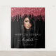 Une tapisserie pour une fête d'anniversaire de 21ème anniversaire (ou de tout âge) fillette et glamour. Un arrière - plan noir à la fausse parties scintillant rouge goutte. Personnalisez et ajoutez votre propre photo de haute qualité de la fille d'anniversaire. Le texte : Le nom est écrit avec un script de style moderne écrit à la main avec des swases. Pour que les swashes ne suppriment que le nom de l'échantillon, laissez les espaces ou émoticônes devant et après le nom. Tempates pour un nom, âge 21 et une date. Peut être utilisé comme décor mural pour la fête ou comme fond de cabine photo.