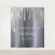 Une tapisserie de fête d'anniversaire 21 ans tendance et glamour (ou tout âge). Un fond argenté factice orné de gouttes de paillettes argentées factices, rose or et rose, effet de peinture qui goutte. Personnalisez et ajoutez un nom et une date. Date de naissance ou de la fête. Texte de couleur blanche. Le texte : 21e anniversaire est écrit avec un style de lettrage manuscrit moderne. Peut être utilisé comme décoration murale pour la fête, comme toile de fond pour un photomaton ou comme souvenir.