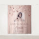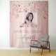 Une tapisserie pour une fête d'anniversaire de 21 ans (ou tout âge) girly et glamour. Un fond dégradé rose avec une finition rose gold et des étoiles élégantes rose gold qui gouttent. Personnalisez et ajoutez votre propre photo de haute qualité de la fêtée. Le texte : le nom est écrit en rose gold foncé avec un style de lettrage à la main moderne avec des fioritures. Pour garder les fioritures, supprimez simplement le nom d'exemple, laissez les espaces ou les émojis devant et après le nom. Modèles pour un nom, un âge de 21 ans et une date. Peut être utilisé comme décoration murale pour la fête ou comme toile de fond pour un photomaton.