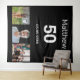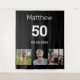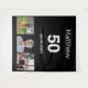 Pour une fête d'anniversaire de 50 ans (ou tout âge). Un collage de 3 de vos photos de lui, amis, famille, centres d'intérêt ou animaux de compagnie. Personnalisez et ajoutez son nom, âge 50 et une date. Fond noir. Date de naissance ou date de la fête d'anniversaire. Texte de couleur blanche.