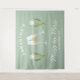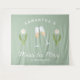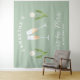 Tapisserie personnalisée de fête de bachelorette rétro Miss to Mrs en vert sauge et blanc avec des verres à champagne et une tulipe blanche est parfaite comme toile de fond pour photos de fête de bachelorette. Célébrez votre douche nuptiale avec style avec le thème parfait de fête au champagne en vert sauge et blanc, le thème parfait pour la mariée nostalgique vintage des années 70 et ses demoiselles d'honneur.