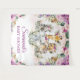 Fond de fête sur le thème de la jungle adorable avec des animaux de safari mignons et une verdure tropicale et des fleurs élégantes à l'aquarelle en rose et violet. Articles assortis disponibles dans notre magasin !