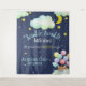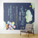 Cette tapisserie de fête de bébé ou toile de fond pour photomaton, marine et neutre, présente la phrase "Twinkle twinkle, little star, savez-vous combien nous sommes EXCITÉS ?" dans un script manuscrit tendance avec des étoiles dorées, des nuages roses, une lune et un renard des animaux de la forêt avec des ballons. C'est parfait pour la fête de bébé du couple pour une petite fille ou un petit garçon, et est facile à personnaliser avec le nom de votre bébé.