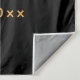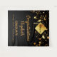 Un fond noir chic. Décoré d'étoiles dorées qui coulent et d'une casquette moderne abstraite en faux or, chapeau, pompon avec l'année à l'intérieur. Personnalisez et ajoutez un nom, nom de l'école/année. Le texte : Félicitations et le nom sont écrits avec un style de lettrage manuscrit moderne et grand. Pour lui et pour elle. Une banderole, décoration de fête, ou photobooth, fond, Fête de fin d'études (toute année).