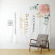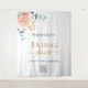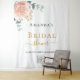 Un fond blanc chic. Décoré avec une rose dorée, une fleur rose blush (rose) et des feuilles d'eucalyptus à l'aquarelle verte, des brindilles, de la verdure et une brindille dorée fausse. Personnalisez et ajoutez le nom de la future mariée et votre #hashtag Instagram pour l'événement. Lettres noires et dorées. Peut être utilisé à la fois comme bannière de bienvenue et comme décoration murale de fête.
