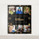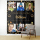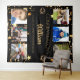 Une tapisserie pour une remise de diplôme célébrant sa vie avec un collage de 6 de vos photos de haute qualité d'elle, de ses amis, de sa famille, de ses centres d'intérêt ou de ses animaux de compagnie. Personnalisez et ajoutez son nom ainsi qu'un texte/année. Texte doré. Une couleur de fond noire chic et classique. Son nom est écrit avec une police de caractères manuscrits moderne. Décoré d'étoiles dorées fausses qui dégoulinent.